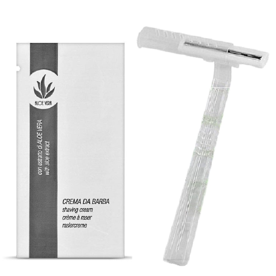 Completarea setului de cosmetice si accesorii pentru hotel cu un kit de barbierit, este o alegere castigatoare pentru a arata ca atentia fata de oaspeti este fundamentala pentru hotelul, casa de vacanță sau pensiunea dumeavoastra.