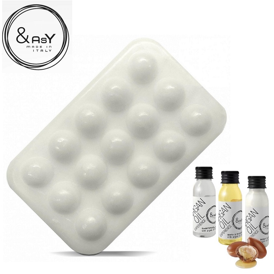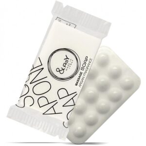 Cine doreste sa se diferentieze si sa-si surprinda placut oaspeții poate alege sapunurile speciale pentru masaj. Hidrateaza și face pielea moale fara să o unga, exercitand un masaj placut în cada sau la duș: un moment de real rasfat pentru oaspeții Dumneavoastra. Oferirea acestui produs in cadrul setului de cosmetice hoteliere este o alegere excelenta si clientul va aprecia cu siguranta acest rasfat la dus.