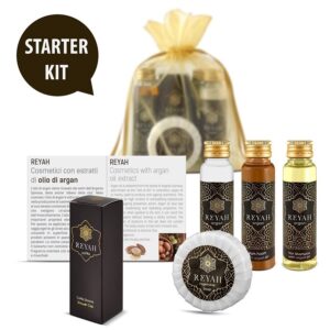STARTER KIT set cosmetice hotel REYAH, contine produse imbogatite cu unul din cele mai pretioase uleiuri din lume, extras din nucile arborelui de argan, care creste exclusiv în Maroc – Uleiul de Argan