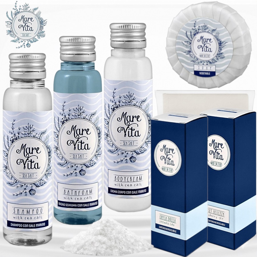 Pachet Cosmetice Hotel Marevita, imbogatite cu un ingredient cu o adevarata valoare terapeutica si extras exclusiv si in mod natural din apa marii – Sarea de Mare