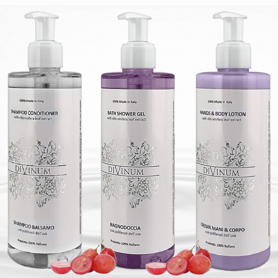 - Cosmetice pentru hotel imbogatite cu extracte de struguri si realizate cu o formula cosmetica testata dermatologic